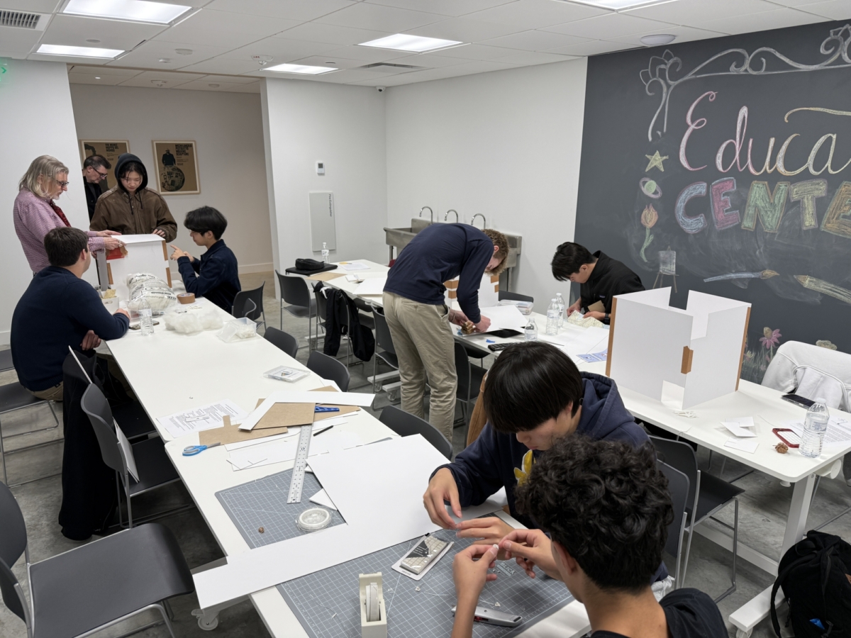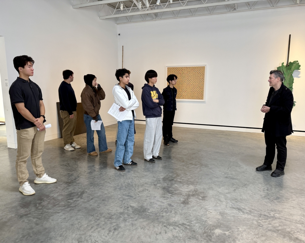 Architect Miguel Quismondo, AIA, then guided students through the design of the museum building itself, highlighting materials, lighting, and spatial flow. Behind the scenes, Thomas Huber, Head Preparator and Art Handler, explained the careful planning required to conserve, store, and install artworks. Students applied these lessons by designing their own scale-model exhibitions, considering visitor pathways, lighting, and spatial storytelling.