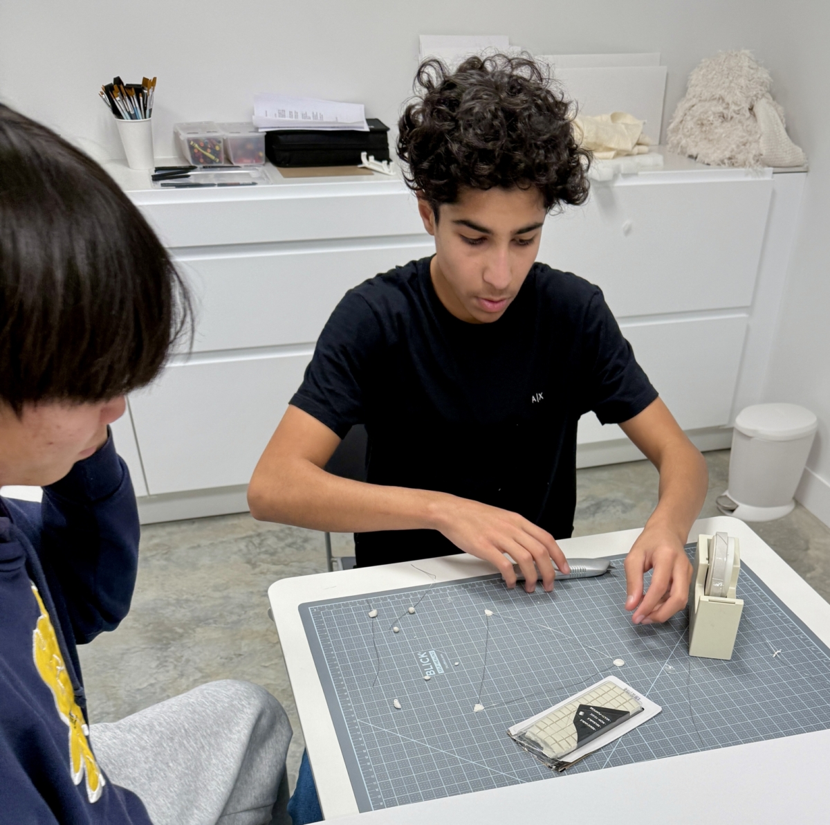 The workshop opened with a tour of Magazzino’s permanent collection led by Chief Docent Greg Slick, who encouraged students to consider how museums communicate complex artistic movements. “We learned about nonprofit sustainability and how museums generate income,” Jiann reflected. “One activity had us paraphrase artwork descriptions for a child, which was a great way to think about communicating art. Meeting the architect and building a model of a gallery room was especially memorable.”