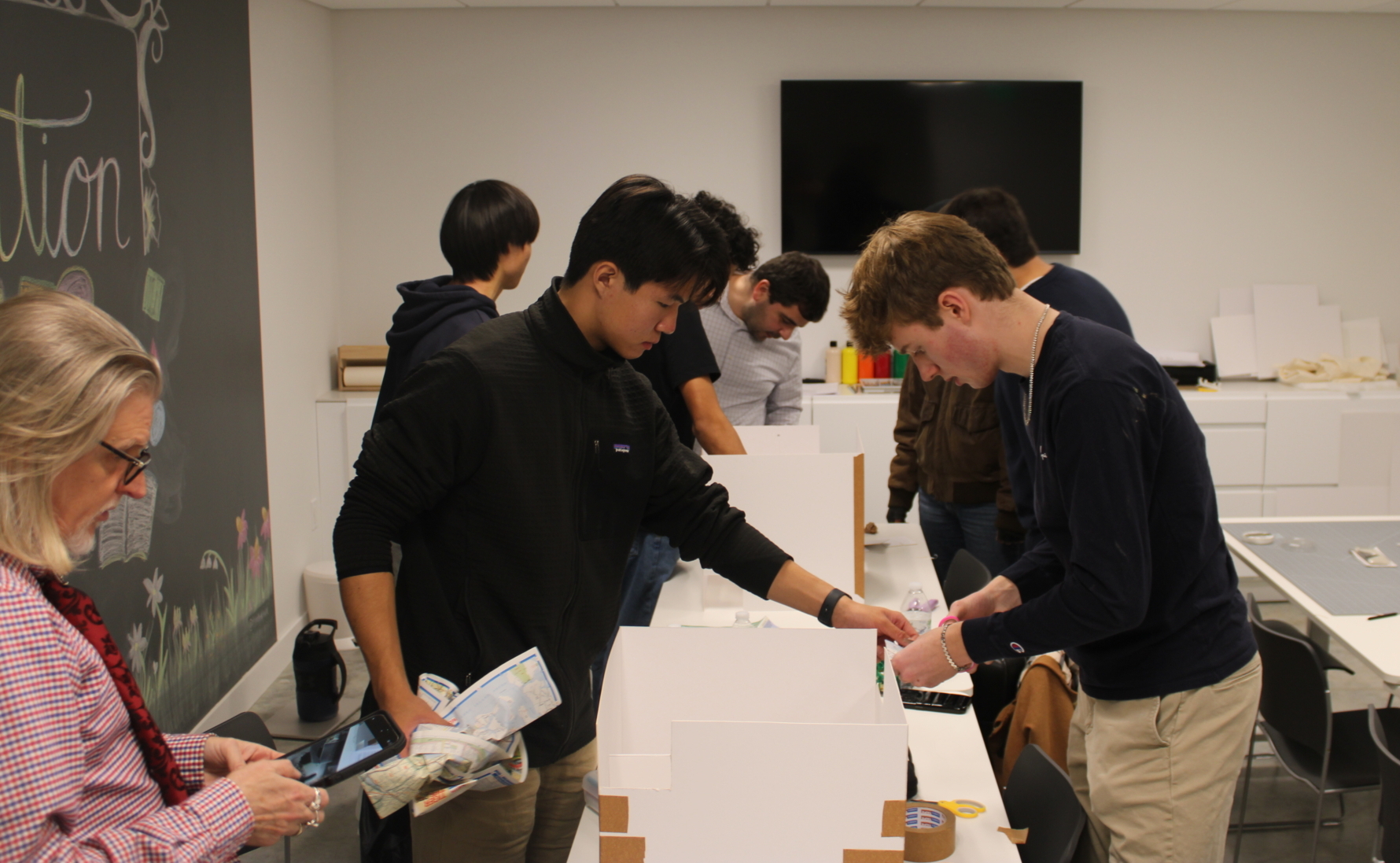 The workshop opened with a tour of Magazzino’s permanent collection led by Chief Docent Greg Slick, who encouraged students to consider how museums communicate complex artistic movements. “We learned about nonprofit sustainability and how museums generate income,” Jiann reflected. “One activity had us paraphrase artwork descriptions for a child, which was a great way to think about communicating art. Meeting the architect and building a model of a gallery room was especially memorable.”