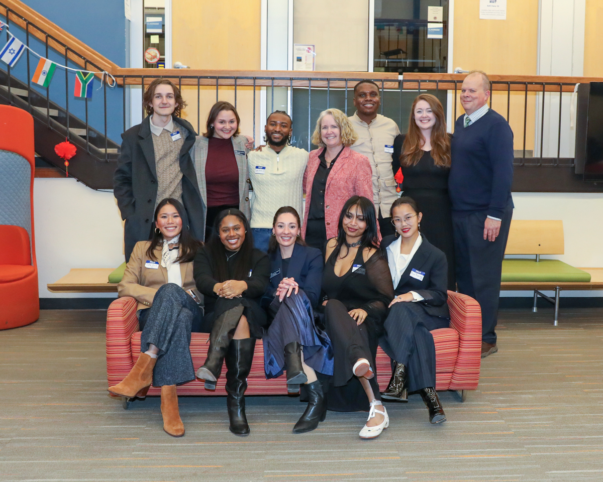 To encourage meaningful engagement, alumni were paired with faculty members in related fields and seated alongside students who had expressed interest in similar areas of study. This format created space for focused, individual conversations and ensured that every junior and senior had the opportunity to create meaningful connections with alumni. Students and alumni then gathered in Ogden Hall for the panel discussion. Jordan Golding opened the evening by reflecting on how recently he had been in the students’ position, navigating the uncertainty of what comes next. He spoke to the unique tension of standing on the edge of adulthood, filled with both fear and possibility, and the enduring comfort he found in our shared community.